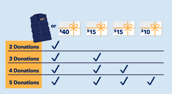 $40 eGift card or a premium puffer vest + additional eGift card per visit